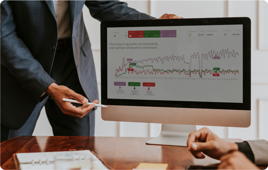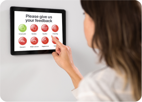 We install (or you can install) touchpads with a simple interface for cleaning staff, alongside sensors and AI algorithms that track real-world usage. Cleaners receive voice instructions in their native language with clear tasks.